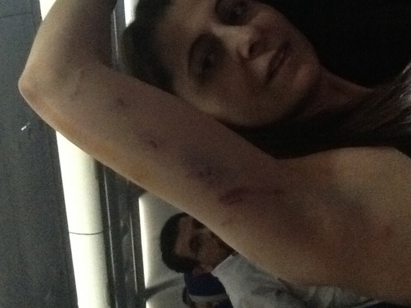 Diese haben die Situation überhaupt nicht ernst genommen. Selbst als ich nach dem Angriff blutend zu den Flugbegleitern gerannt bin und um Hilfe gebeten habe. Als vier von ihnen zu meinem Sitz kamen, um die Passagierin zu sehen und diese mich erneut angegriffen und bespuckt hat, mussten sie sie zu viert festhalten. Trotz meiner blutigen Narben und dieser Aktion wurde bei der Polizei am Flughafen dieses Ereignis vollkommen verharmlost. Erst nach mehreren Anrufen im Hotel durch die Polizei kamen 2 Flugbegleiter, um auszusagen. Um das Geschehen zu verharmlosen, wurden 2 Begleiter geschickt, die kaum oder nichts von dem Vorfall mitbekommen hatten.