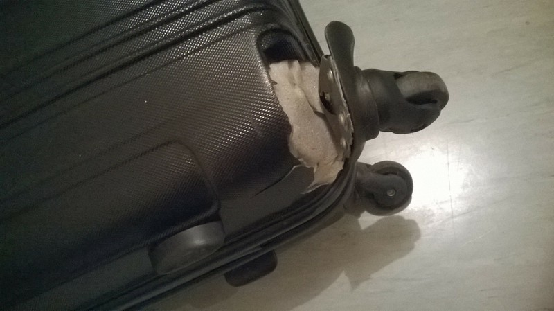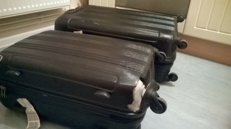 In Hamburg habe ich festgestellt, dass mein Hartschalen Koffer beschädigt ist und mein Buggy gebrauchen ist und das Futter gerissen ist.