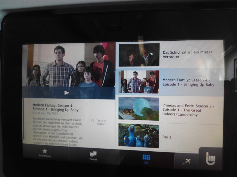 Bei einem Langstreckenflug zwei Filme und zwei Serien als "Entertainmentpaket" anzubieten ist schlicht frech! Auf der Website wird übrigens nicht darauf hingewiesen, dass nur das "Premiumpaket," zusätzlich 8 EUR kostet. Bei anderen Fluglinien wie z. B. Cathay, Austrian Airlines, Etihad oder Air Berlin gab es kein "beschnittenes" Entertainmentpaket und auch die Auswahl der Filme war weitaus aktueller als bei Condor.